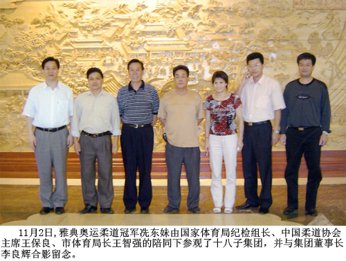 本報訊(記者 丁向明、張乃鋒)11月2日下午,國家體育總局紀檢組組長、中國柔道協會主席王保良,廣東省體育局重競技管理中心主任蔡建祥,第28屆雅典奧運會女子52公斤級柔道冠軍冼東妹一行,在市體育局局長王智強的陪同下,來到我集團作客。