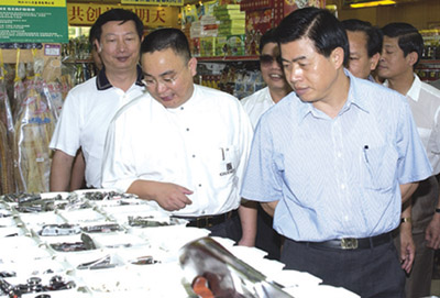 黃華華在省政府秘書長、辦公廳主任陳堅,省政府副秘書長、發(fā)展研究中心主任謝鵬飛,省海洋與漁業(yè)局局長李珠江,省政府辦公廳副主任黃小鋒,省經(jīng)貿(mào)委副主任楊建初,市委書記、市人大主任林華景,市委副書記、市長江泓、陽東縣委書記馮桂雄等陪同下來到我公司。